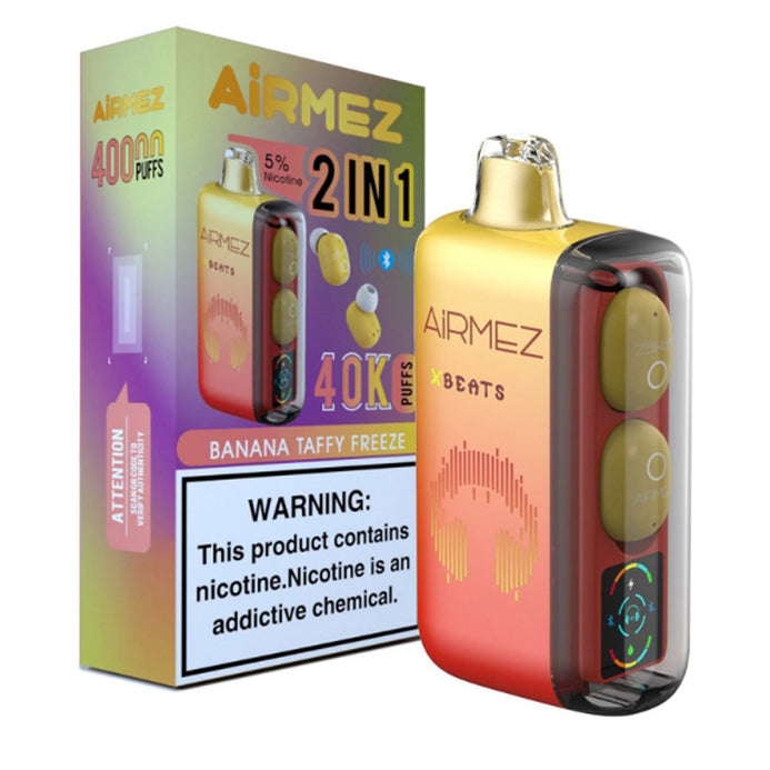 AirMez X-Beats Rechargeable Pod Vape – 40,000 Puffs (50mg) with Bluetooth & Hi-Fi Headphones | 3 for 2 Offer