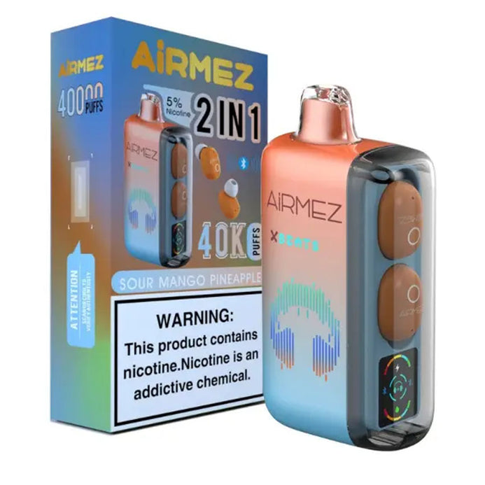 The AirMez X-Beats Rechargeable Pod Vape is one of the most advanced vaping devices on the market, blending high-performance vaping with immersive entertainment. Designed for tech-minded users, it features built-in Hi-Fi headphones, Bluetooth 5.0, a smart screen display, and an impressive 40,000-puff capacity. Powered by Type-C fast charging and using a smooth dual-airflow system, this pod vape offers exceptional flavour, cloud production, and convenience.