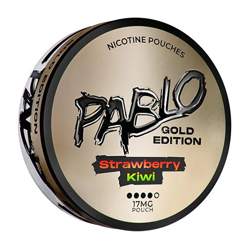 Pablo Gold Edition Strawberry Kiwi Nicotine Pouches boast a concentration of 30 mg/g nicotine and 17mg a pouch making them lighter than normal Pablo's, with a classic combo of strawberry and kiwi.