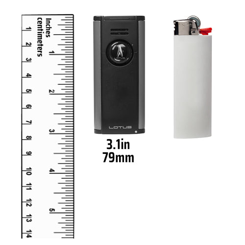 It is made of a lightweight metal housing, and has a simple push button ignition. It's dimensions are 3.125 x 1.375 x 0.75"