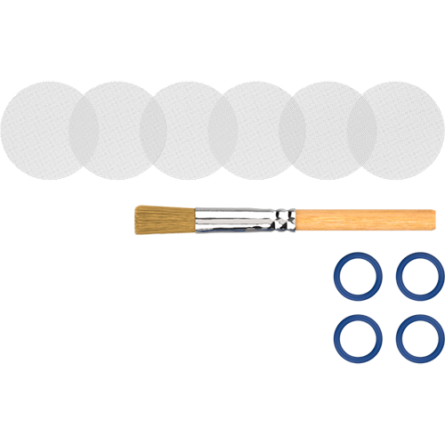 Included in the kit is everything required to replace the top and bottom screens 3 times, along with 4 top cap O rings and a cleaning brush.