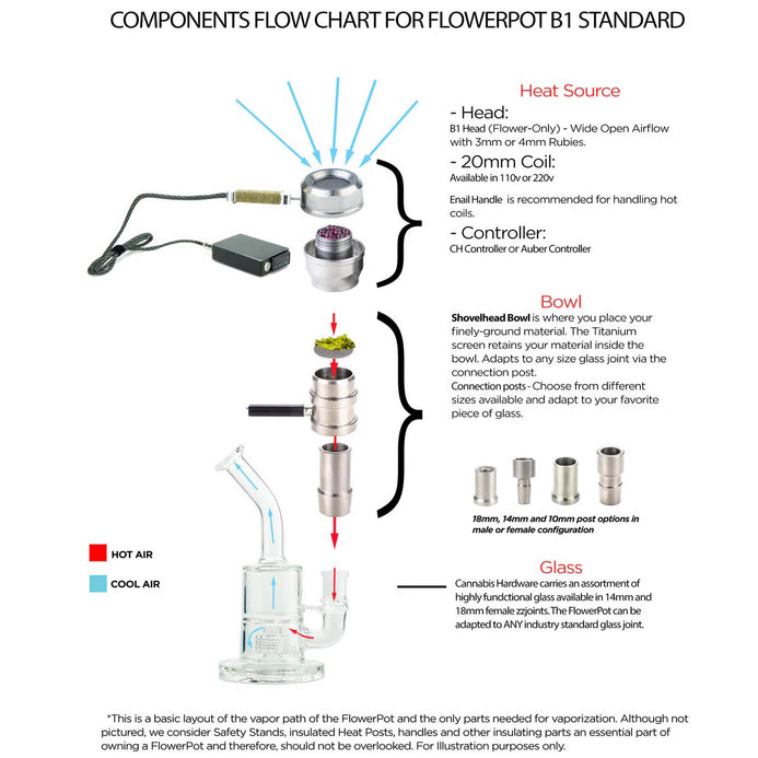 Everything you need and nothing you don't. If you have a Glass Rig, this bundle will get you vaping right away. Includes both 14mm and 18mm connection posts. The FlowerPot B1 is the premiere desktop Flower vaporiser.