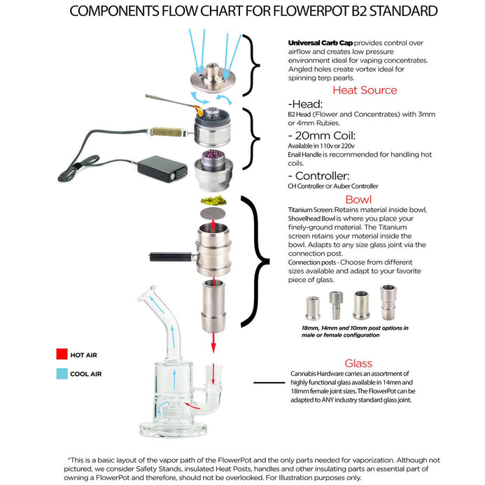 Everything you need and nothing you don't. If you have a Glass Rig, this bundle will get you vaping dry herbs and concentrates right away. Includes both 14mm and 18mm connection posts. The FlowerPot B2 is the premiere desktop dual purpose vaporiser.
