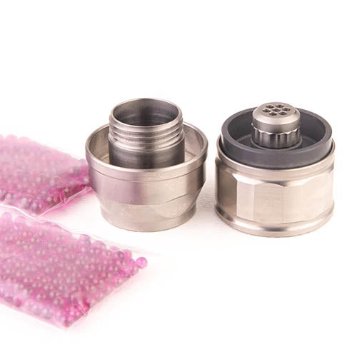 Cannabis Hardware started with the legendary Vrod head and machined away the inside to accommodate spheres of varying sizes and materials. This design more than doubles the heater's surface area.