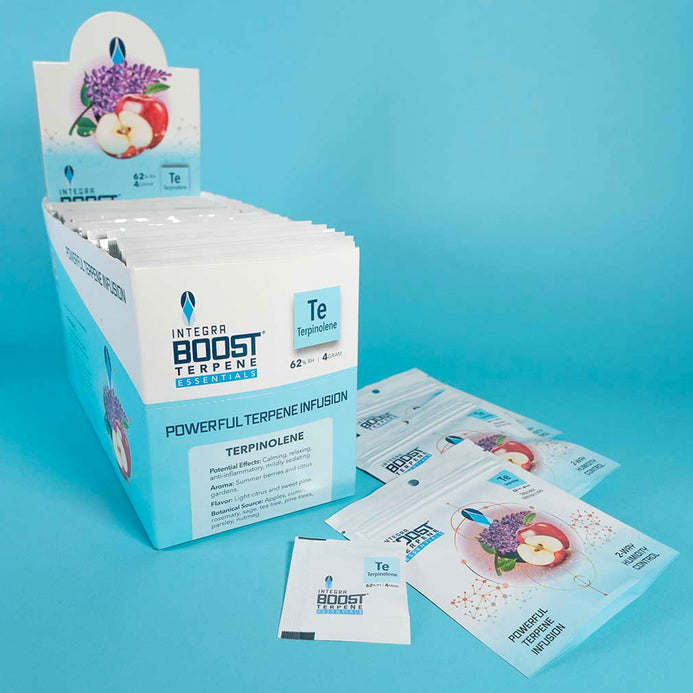 Each pack of Integra Boost Terpene Essentials contains our patented salt-free, plant-based 2-way humidity control formula and our botanically sourced terpene isolates. All of our terpenes are tested, standardized in potency, and Safe Terpene Certified.