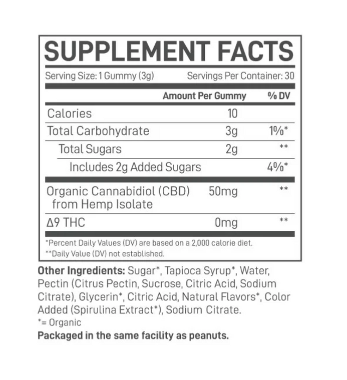 50mg CBD per Gummy Precisely dosed for consistent daily use.