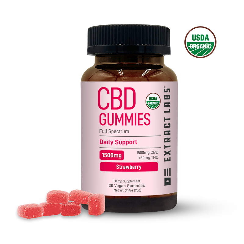 - Extract Labs Organic CBD Gummies – Daily Support – Strawberry (1500mg)