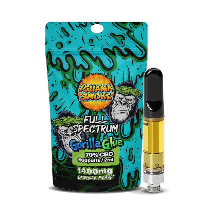 The Iguana Smoke CBD Vape Cartridge – Gorilla Glue delivers a high-potency, full-spectrum CBD experience in a convenient, refill-free cartridge. Each 2 ml cartridge contains 1400 mg of active cannabinoids (70% CBD), naturally flavoured with a Gorilla Glue terpene profile known for its rich, earthy character.