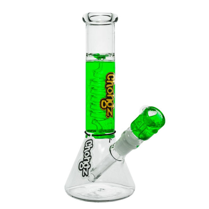 The Chongz "Daft Pink" Liquid-Filled Waterpipe is a stylish and functional beaker-shaped bong that guarantees smooth and cool hits. With its liquid-filled chamber and unique design, this 25cm piece is perfect for everyday use and a standout addition to any party.