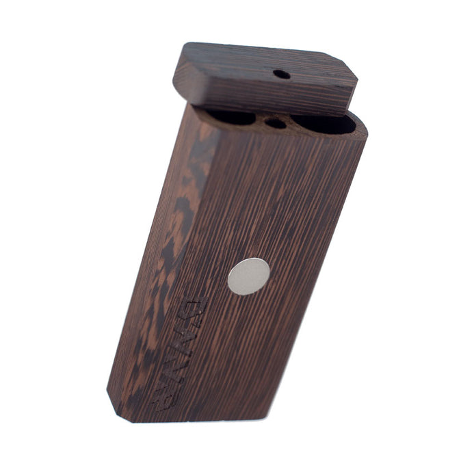 Store your standard length (92mm) DynaVap device in style with the Walnut DynaStash. It holds your device as well as material. It also includes an integrated magnet to remove the hot cap, hold your DynaVap vaporizer upright, and store the DynaStash attached to any magnetic surface. Comes with an extra storage compartment for an optional Stash Tool.