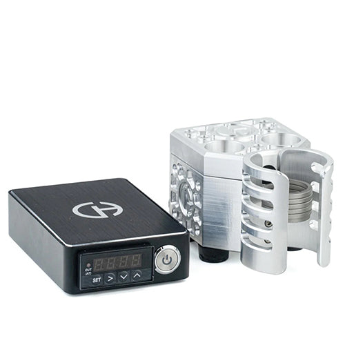 To use the Whisper base, you can insert your flower diffuser or drop in a 25mm quartz banger into the built-in coil. The device will stay hot and ready until you're ready to use it. When you're ready, simply take out either the flower diffuser or the banger and use it with your shovelhead bowl and water piece to enjoy a cord-free enail experience. You can reuse the flower diffuser multiple times before placing it back on the coil.