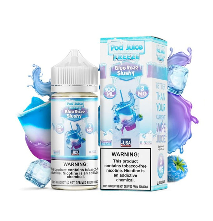 Experience the chilly flavour of summertime in a bottle with POD Juice's Blue Razz Slushy Freeze! Take a trip down memory lane with nostalgia-inducing tastes of your favorite frozen slushy drink, with a blast of blue raspberry flavour.