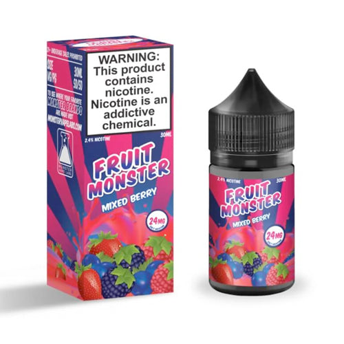 Indulge in the delectable taste of Fruit Monster - Mixed Berry E-liquid - Salts Nic 48mg - now available in convenient 30ml bottles. Each puff offers a perfect blend of sweet and tart flavours, thanks to high-quality ingredients and 48mg nicotine salt strength. Plus, its low-wattage vape tank compatibility makes it a must-have for any vape enthusiast.
