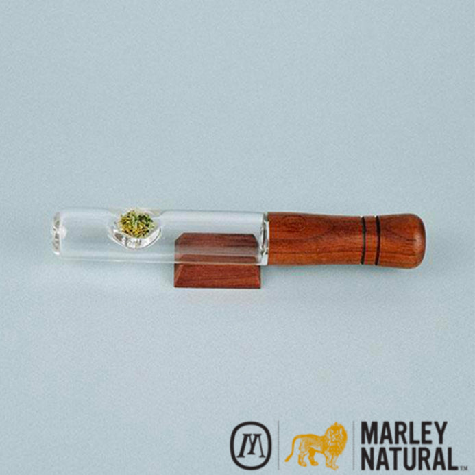 Heat-resistant hand-blown glass paired with a rounded American Black Walnut mouthpiece makes the Marley Natural Steamroller your ideal companion. Its distinctive straight form allows for an increased volume intake while a curved wood stand provides a convenient and proper display.