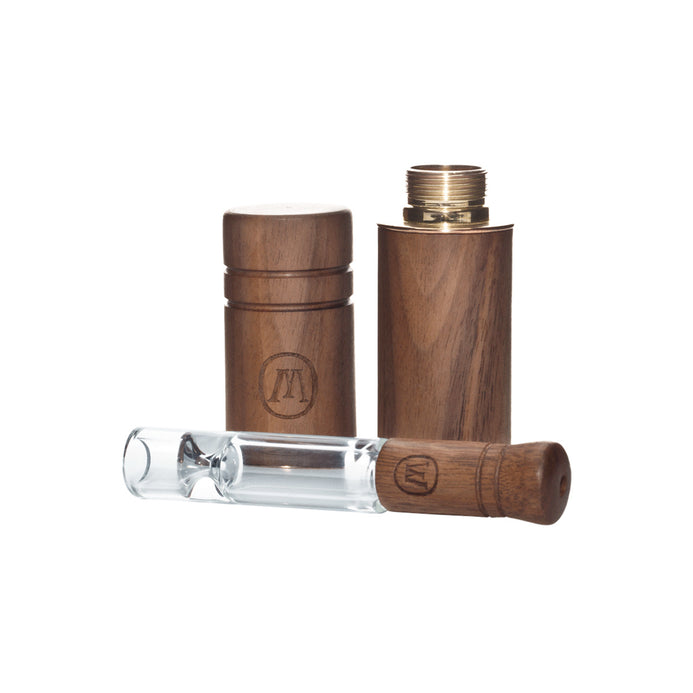 This premium glass taster by Marley Natural is made from thick borosilicate glass with a black walnut wood base and a natural carnauba wax finish. A stylish solution for a quick hit.