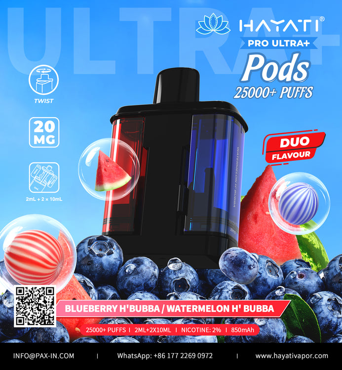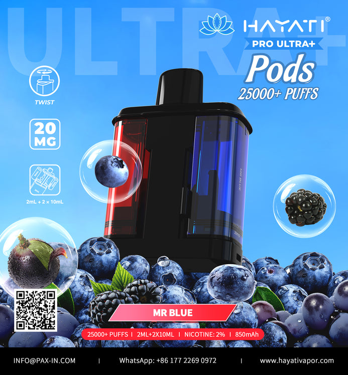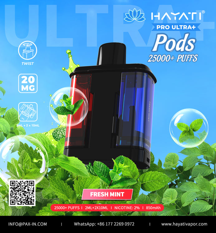 Hayati Pro Ultra + Replacements Pods - up to 25000 Puffs, 2% Nicotine, UK compliant