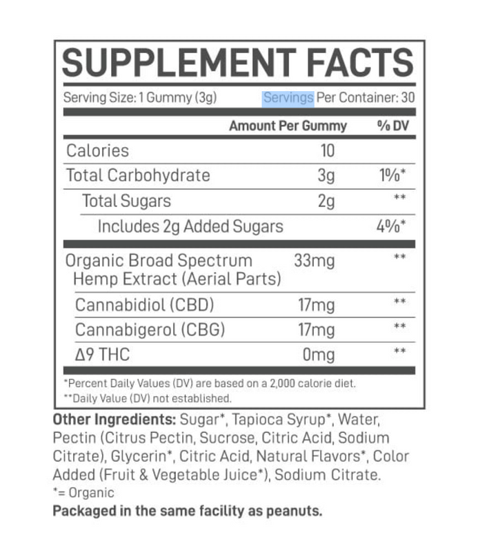 17mg CBG & 17mg CBD per Gummy Pre-measured, consistent servings.