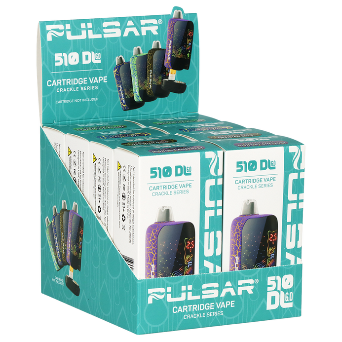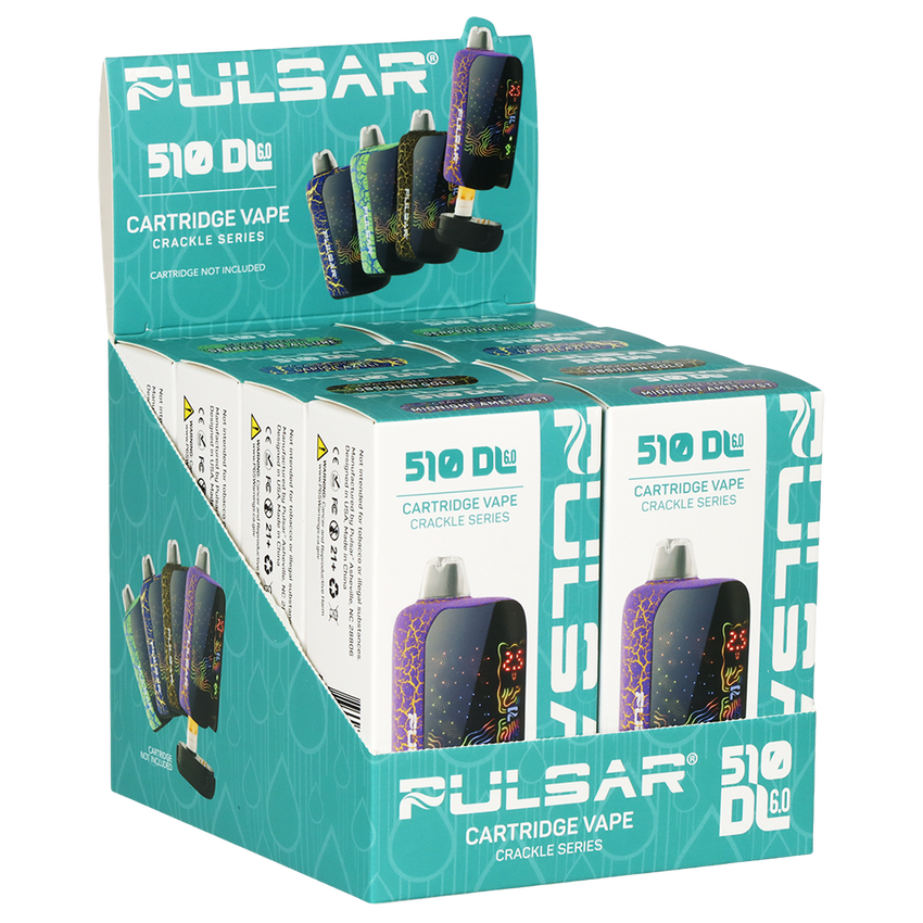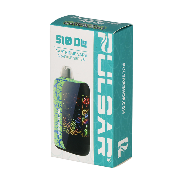 The Pulsar 510 DL 6.0 Precision Voltage Control Vape Bar delivers advanced performance and sleek design in a compact cartridge battery. Part of the striking Crackle Series, this device combines bold aesthetics with precision control, making it an excellent option for users who want both style and functionality.