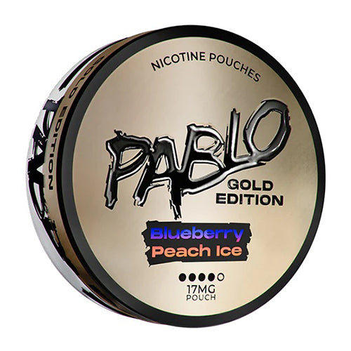 Pablo Gold Edition Blueberry Peach Ice Nicotine Pouches boast a concentration of 30 mg/g nicotine and 17mg a pouch making them lighter than normal Pablo's, packed with a juicy blueberry and peach flavour and a cooling ice finisher.