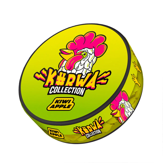 KURWA Collection Kiwi Apple nicotine pouches offer a vibrant flavor experience, combining the distinct sweetness of kiwi and tartness of apple. Consume with caution for a nicotine kick that will make your taste buds tingle. Perfect for those who seek an invigorating, fruity flavor.