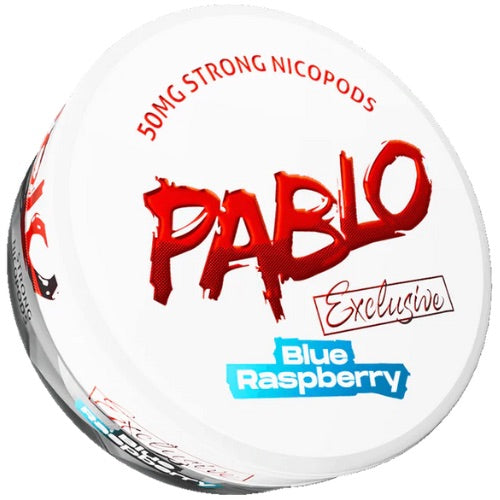 PABLO Blue Raspberry Nicotine Pouches boast a concentration of 50 mg/g nicotine, with a sweet juicy blue raspberry flavour.