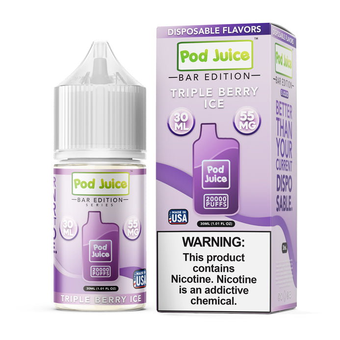 Pod Juice – Triple Berry Ice Bar Edition Nic Salt E-Liquid (30ml) Available in 35mg or 55mg Nicotine Strength