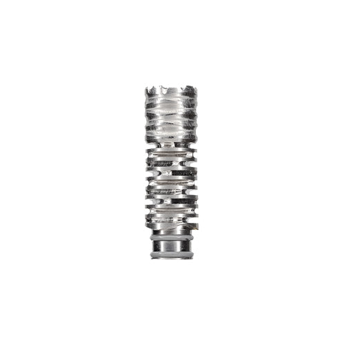 Let us begin with the tip. A Nona notched completely contoured extraction chamber that doubles as a built in grinder sits atop a trisected 9 fin profile. Contained inside the extraction chamber is our two position Adjust-a-Bowl feature that allows you to adjust the size of the dosing chamber to your needs.