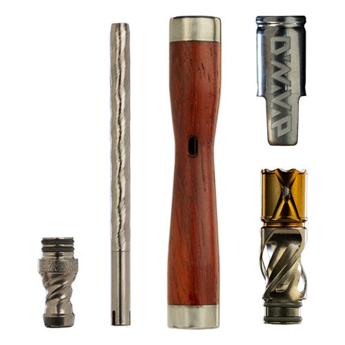 The WoodWynd is here, bringing the old-style wood into the future with a modern and sleek titanium-complimented design! We invite you to indulge in a seamless blend of tradition and modernity with the WoodWynd dry herb vaporizer, a product that combines a vintage wood style with advanced smokeless vaping technology. The WoodWynd is crafted with an hourglass-shaped Padauk hardwood stem that presents a classic aesthetic. With stainless steel crowns that strengthen the stem, this wood vape pen provides the most secure connection between the tip and the mouthpiece. This device is completely modular with all DynaVap vaporizers, and it will fit in any XL-sized DynaStash or SlimStash. With the new WoodWynd edition, we are offering you the best vaporizer that is as much a visual and tactile delight as it is a superior vaping device.