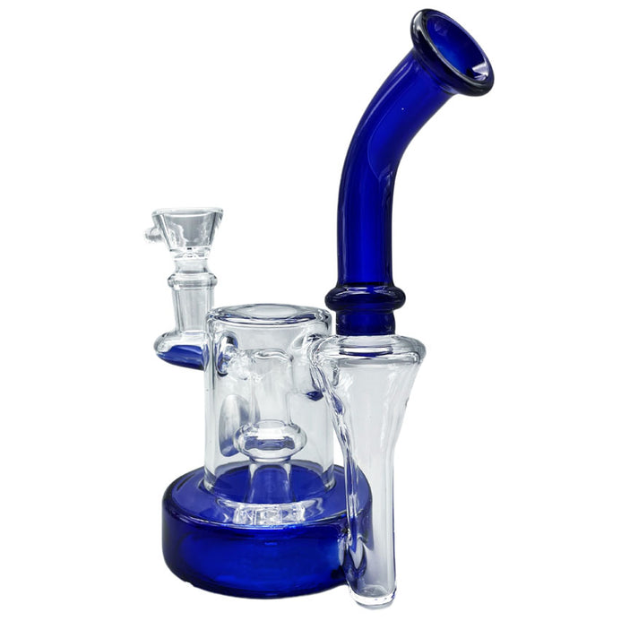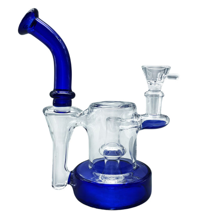 The Glass Small Percolator Bong is a compact and functional hand-blown masterpiece crafted in India. Designed with both aesthetics and performance in mind, this bong features a unique chamber that extends into the base, allowing for more water and a smoother draw.