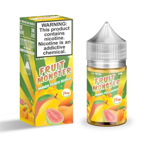 Experience the irresistible combination of ripe mango, juicy peach, and tangy guava with Fruit Monster's Mango Peach Guava E-liquid. Available in 30ml bottles, this high-quality vape juice boasts a 48mg nicotine salt strength for a flavourful hit with every puff.