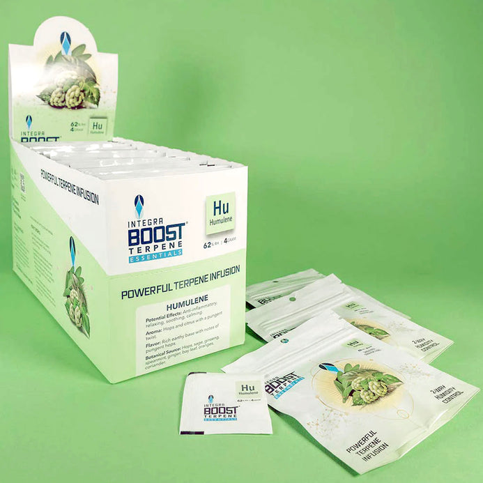 Each pack of Integra Boost Terpene Essentials contains our patented salt-free, plant-based 2-way humidity control formula and our botanically sourced terpene isolates. All of our terpenes are tested, standardized in potency, and Safe Terpene Certified.