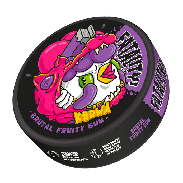 Kurwa Fatality Fruity Gum is a potent nicotine pouch boasting a fruity gum flavor - is this the newest edition of Kurwa Bubblegum? Be aware that the nicotine hit from Kurwa is powerful and intense.