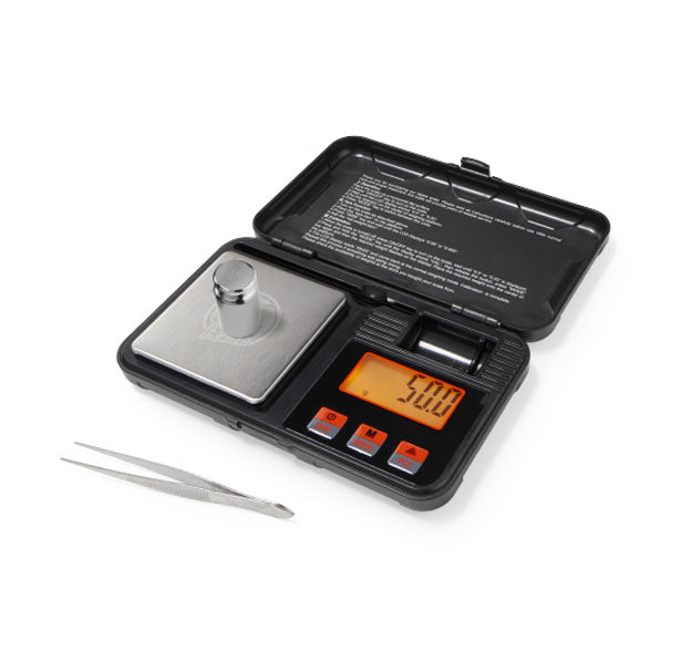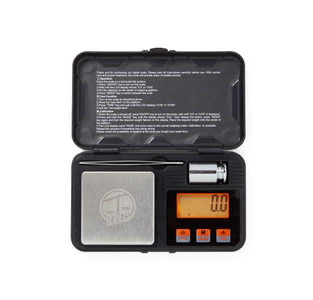 The Ares digital scale from Levels Scales is built tough with a durable hardshell case. Calibrating the scale becomes an easy task with the 50g calibration weight included with the scale. The Ares scale has a metal tweezer for easy loading and removing contents to achieve ultimate accuracy. A back-lit LCD uses large digits for easy-to-read results. Other product highlights include full tare capacity and auto-off with 60 seconds of inactivity. Product Features :