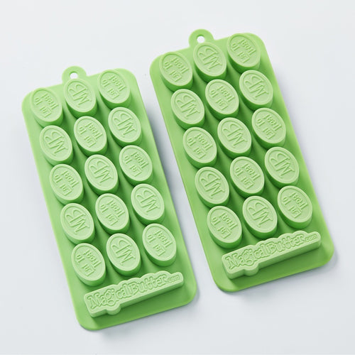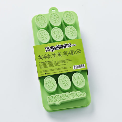 Each MagicalButter Eat to Treat Gummy Tray makes 12 oval MB gummies plus one large MagicalButter logo-shaped gummy. Perfect for baked goods, gummies, and other candies. Easy to clean, dishwasher-safe, durable silicone.