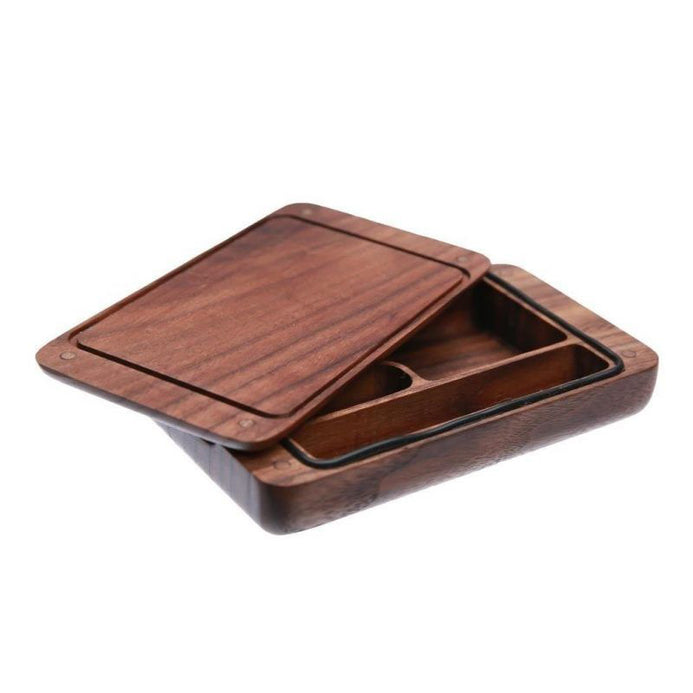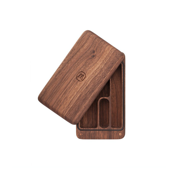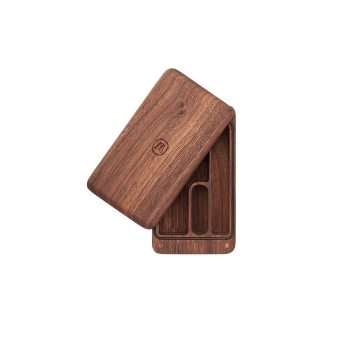 With a compact and multi-purpose design, the Marley Natural black walnut wood small case is a classic essential for protecting and housing accesoires and stash. Its tasteful, soft-edged form is highlighted by a uniquely engineered slide-top system, complete with a universal silicone inner seal that allows for convenient access and maximum utility. Marley Natural small case dimensions: 2 x 7 x 12 cm