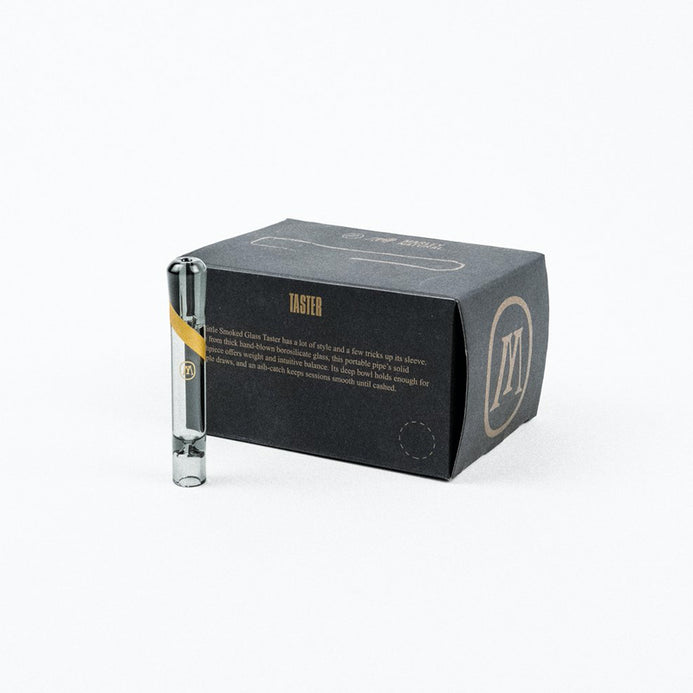 This little Smoked Glass Taster has a lot of style and a few tricks up its sleeve. Made from thick hand-blown borosilicate glass, this portable pipe’s solid mouthpiece offers weight and intuitive balance.