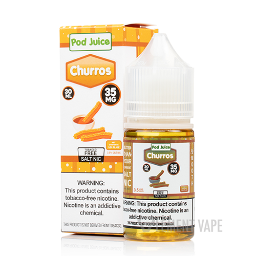 Pod Juice Tobacco Free Salt Nic - Churros Eliquid - 35/55mg - 30ml bottle - UK