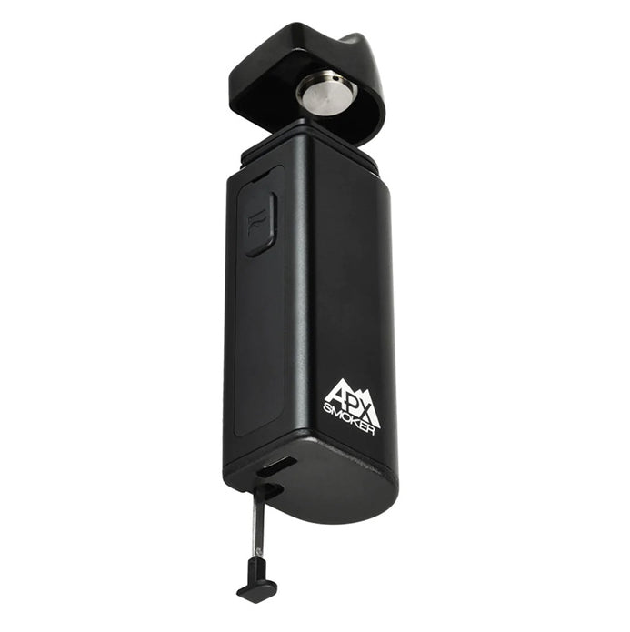 APX Smoker V3 Electric Pipe delivers big, dank clouds of smoke like a standard glass pipe- except without a lighter- just the push of a button! The Smoker V3's incredible 7-second heat time (reaching 950 - 1094 degrees F) comes from its powerful 1100 mAh battery, larger removable quartz-lined chamber, and revolutionary self-cleaning ceramic power pad disc heating element! Once heated, this palm-sized combustion pipe will deliver super-quick big hits over and over with the simple push of a button. Use the 2-click hands-free power mode for easy hits and group sessions. A zirconia mouthpiece helps deliver pure herb flavor anywhere you dare and without worry of breaking!