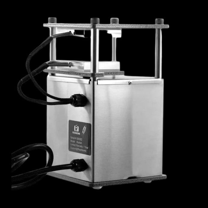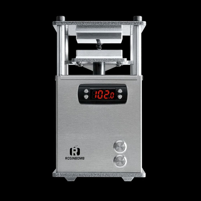 Blast off on your one-man rosin pressuring excursion with the Rosinbomb Rocket; a compact 13lb. press that conveniently fits in your backpack while offering an intense 1500lbs. of crushing pressure! Big things do come in small packages! The Rocket rosin press isn't a manual press like most models its size; it's all electric with surprisingly quiet operation. Using a mere 3 amps of power when operating at full pressure, this mini rosin press is low maintenance with high production, tackling up to 5g of material in a single press. If you're pressing for yourself, this is the press you want at your side (or in your bag if you're on the move).