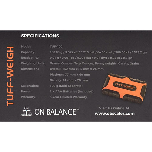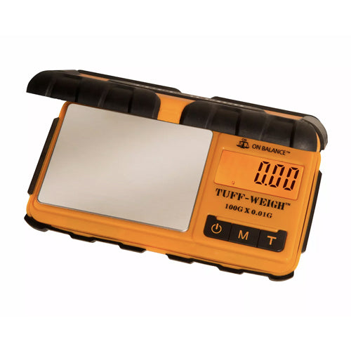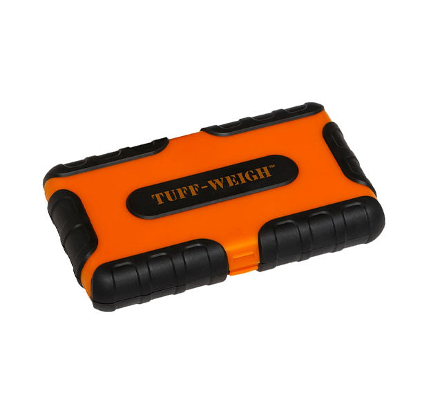 The TUFF-WEIGH™ digital mini scale features a rubberized, impact-resistant exterior for maximum durability with a shape that easily fits in your pocket or bag. Ideal for arts and crafts, hobbies, cash and carry stores, headshops, jewelry, and sport and shooting purposes. The hinged cover can detach to be used as a weighing tray, giving you ample room to weigh. The back-lit LCD features large digits for clear, easy-to-read results.