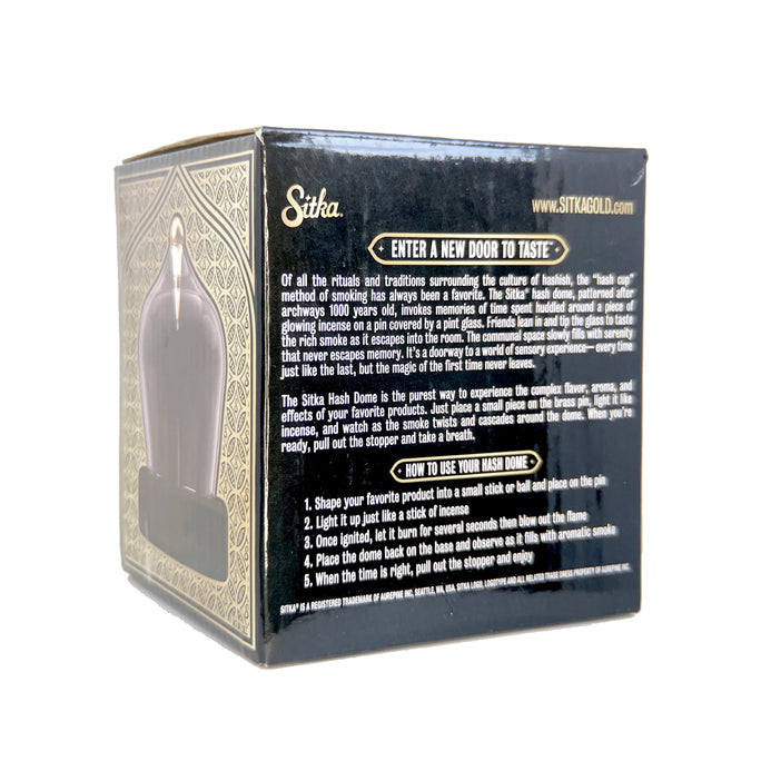 The Sitka Classic Hash Dome provides an ideal means to savor the nuances of your favourite products. Simply lay a tiny portion on the brass pin, ignite it like incense, and observe the smoke move and swirl within the dome. Release the stopper and inhale when ready.
