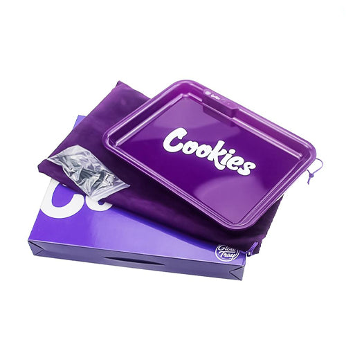 Cookies Rechargeable 7 Colours LED Glow Rolling Tray Check out this gorgeous Cookies rechargeable seven colour LED glow tray perfect to add an extra little sparkle to your rolling experiences.