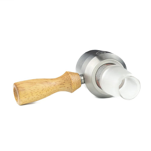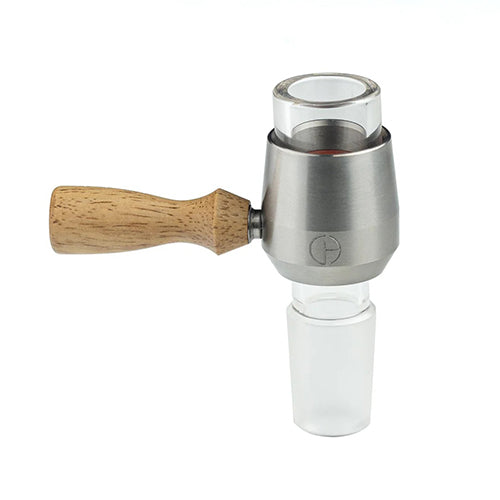 At the top, you have the freedom to use any of the 22mm glass inserts with 2mm and 3mm wall thickness, along with a titanium insert (please select which insert you would like). At the bottom, the Matrix weed bowl accommodates 18mm, 14mm, and 10mm joint stems, offering unparalleled versatility (comes with an 18mm joint). The handle is equipped with the same 10-24 threading as the Shovelhead or Zenleaf parts, allowing interchanging handles.