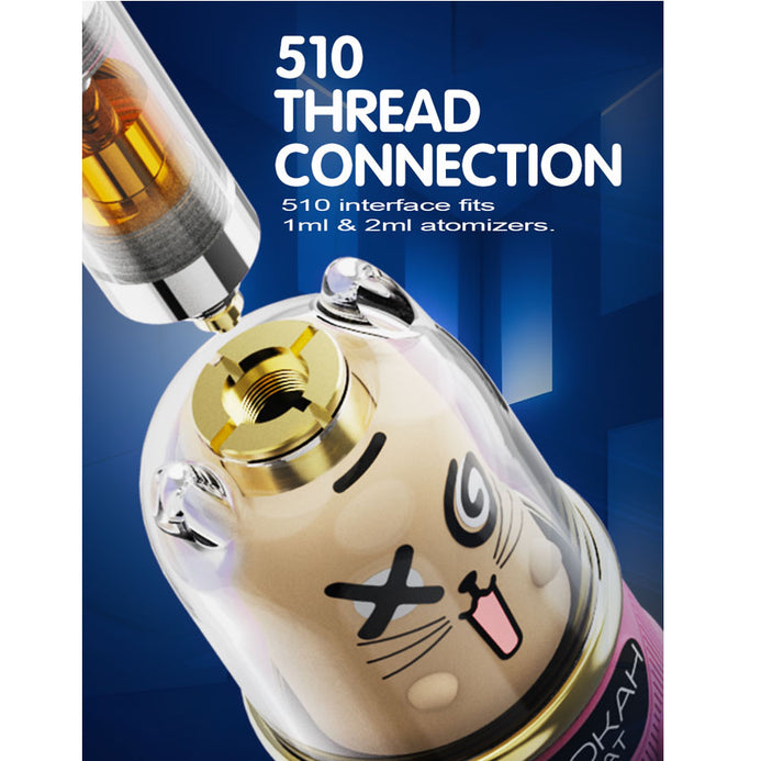 Meet your new vaping sidekick — the LOOKAH Cat Discreet 510 Battery. Compact, powerful, and irresistibly cute, this clever cat-shaped battery brings fun and functionality together. With a 750mAh capacity, five adjustable voltage levels, and a 10-second preheat mode, it delivers smooth, consistent performance every time. Its playful design, RGB lighting, and durable silicone-and-glass body make it a perfect mix of style and practicality.