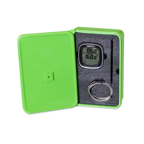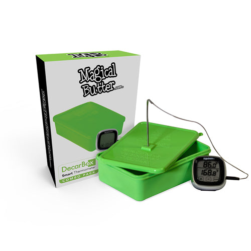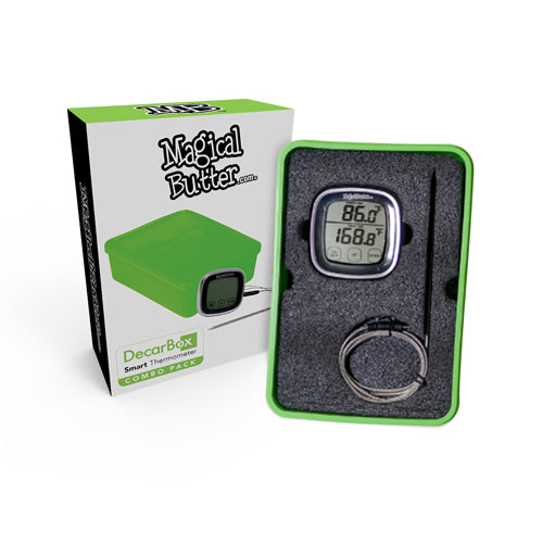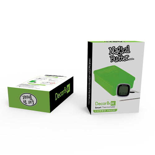 The DecarBox features an integrated digital probe thermometer. This device lets you easily calibrate your oven for precise accuracy during decarboxylation and baking. The stay-cool external digital display lets you monitor the temperature inside your DecarBox without opening the oven, saving money and keeping temperatures from fluctuating. The DecarBox allows you to effortlessly activate fresh herbs to your specific desired potency! (See Decarb Directions on pages 6-8 for a step-by-step guide.) Food-grade silicone shell prevents loss of valuable plant compounds.