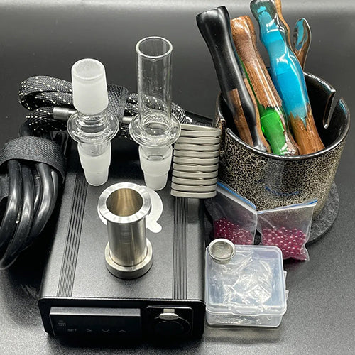 The design ensures next level extraction with no green spots left or stirring required. The Taroma 360 functions from the smallest micro doses (best with with straight through glass adapter and rimmed bowl) to huge half gram + bowls with the glass bowl/stem and adjustable screen.