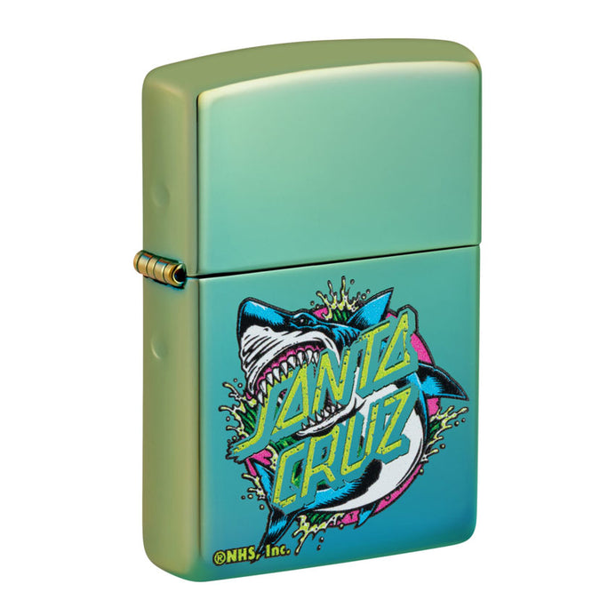 This High Polish Teal Zippo lighter features Santa Cruz Skateboards' classic Shark Dot design, created using Zippo’s advanced Colour Image process. A perfect addition for collectors and skateboard enthusiasts alike.